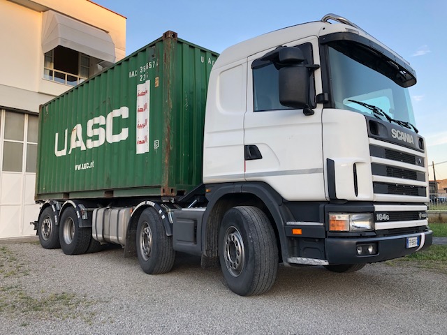 2019 – SCANIA R580 Postato il 12 giugno 2019 di Autotrasporti Gasperini CSC Inviato su Senza categoria il mezzo SCANIA R580 con motrice portacontainer 8×2 è idoneo per il trasporto di container da 20 piedi “pesanti” (PTT 320 Tons) Condividi: Condividi su X (Si apre in una nuova finestra) X Condividi su Facebook (Si apre in una nuova finestra) Facebook Mi piace Caricamento...